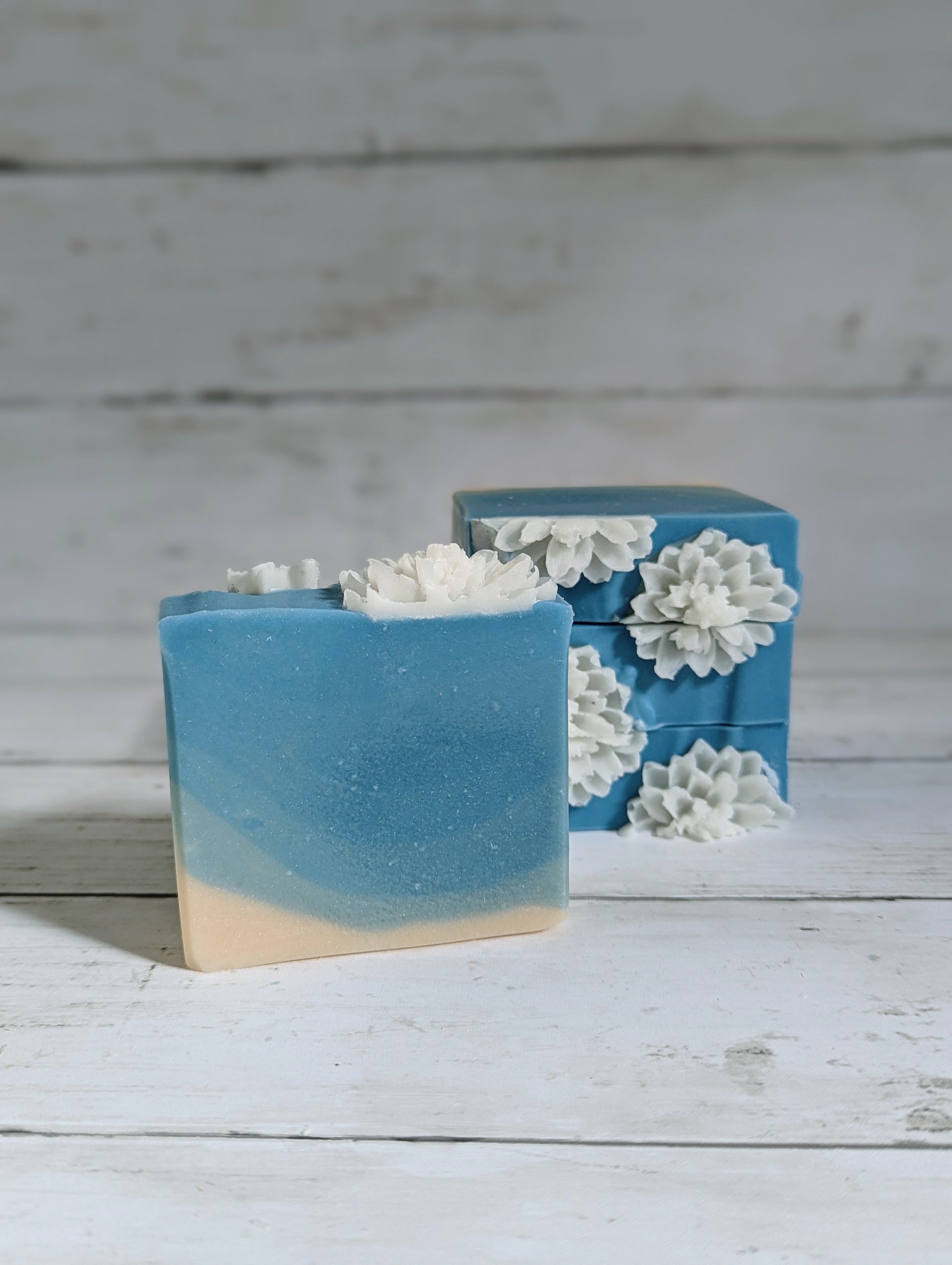Ingredients: Filtered Water, Coconut Oil, Palm Oil, Olive Oil, Sodium Hydroxide (Lye), Canola Oil, Goat Milk, Kaolin Clay, Fragrance Oil, Salt, Sugar, Mica Powders, Titanium Dioxide.