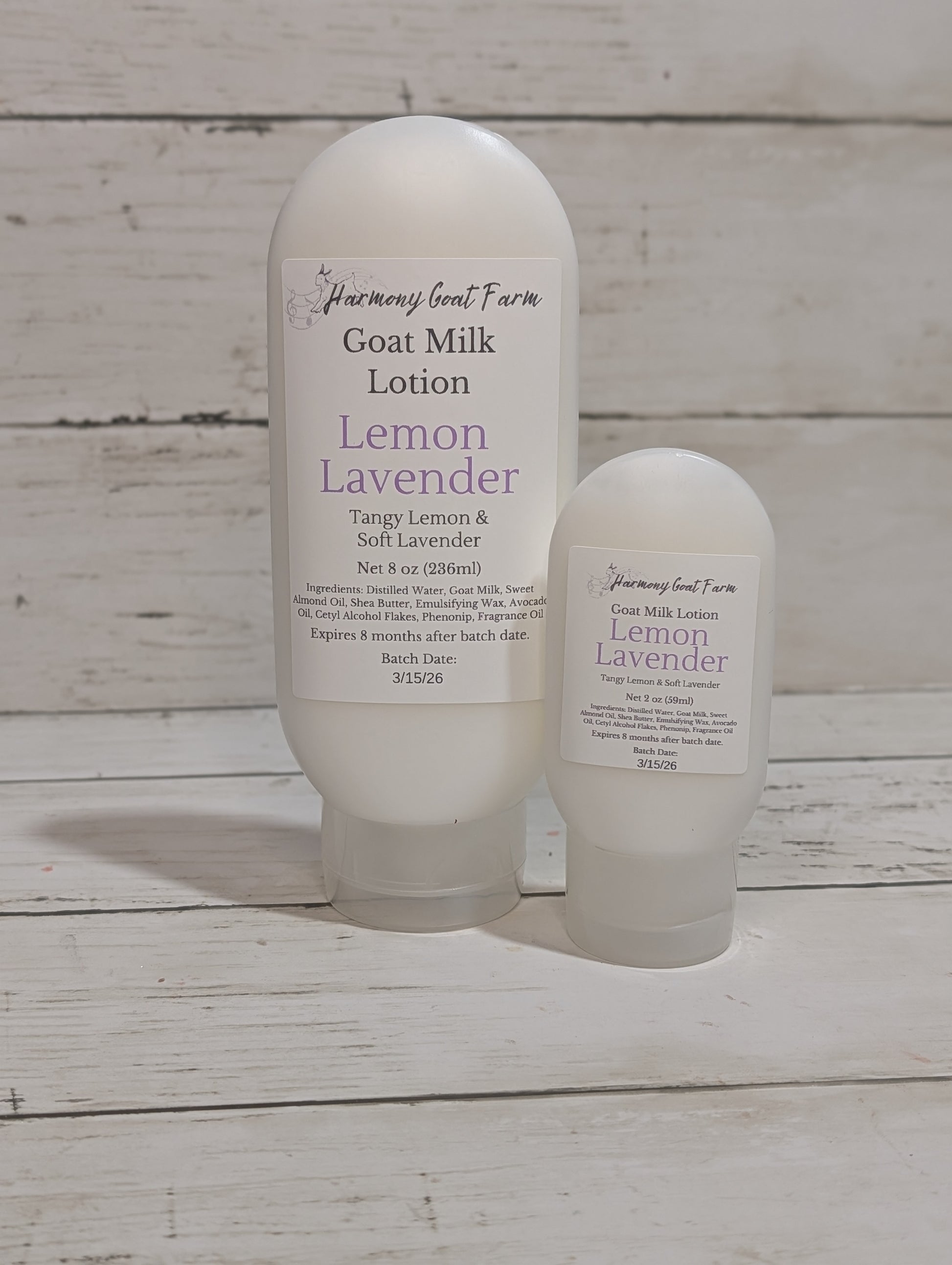 Ingredients: Distilled Water, Goat Milk, Sweet Almond Oil, Shea Butter, Emulsifying Wax, Avocado Oil, Cetyl Alcohol Flakes, Phenonip, Fragrance Oil